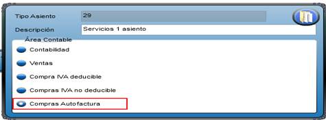 El tipo de asiento a utilizar cuando queramos aplicar este tipo de configuracion autofactura será Compras Autofactura”